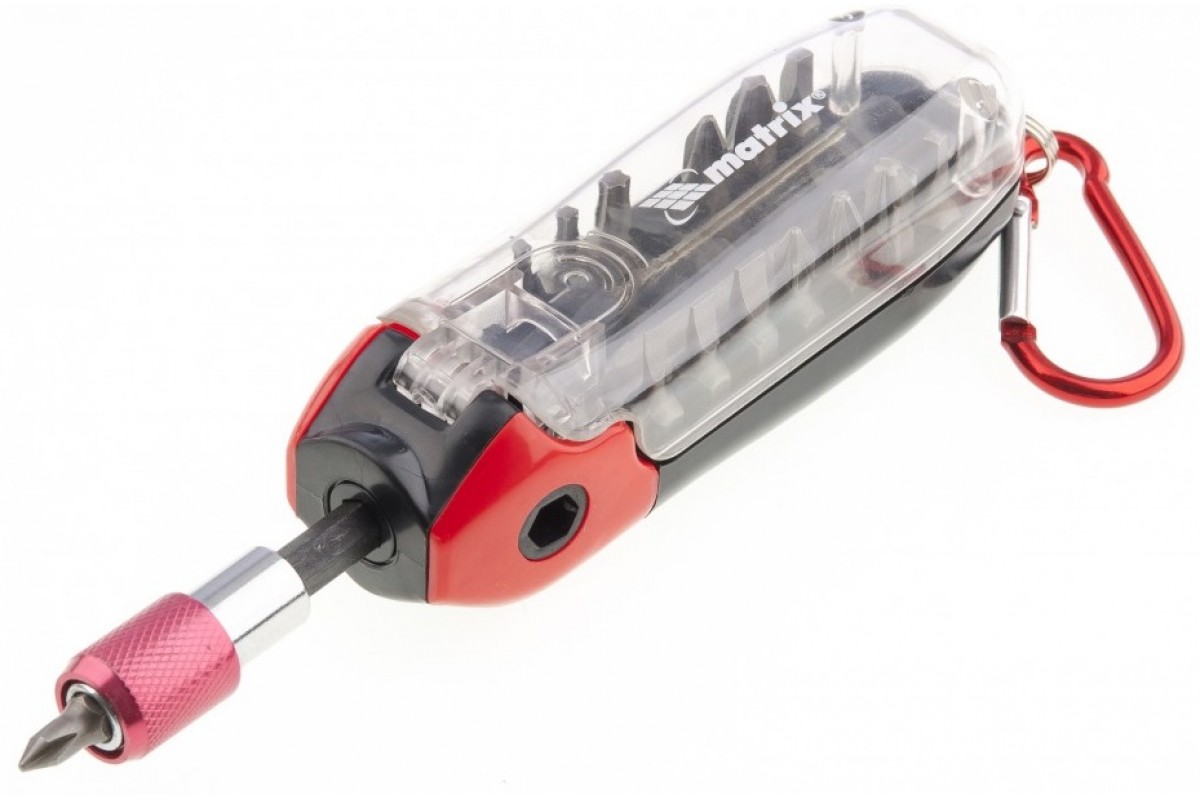 Многофункциональный набор Matrix 11383 включает 18 бит из стали CrV для шуруповертов, ручных и механических отверток. В комплект входит 14 бит разных типоразмеров длиной 25 мм и 2 удлиненные биты 50 мм для работ в труднодоступных местах. Они позволяют проводить монтажные/демонтажные работы с шурупами и саморезами, имеющими шлицы различного типа. Набор будет полезен для решения бытовых и профессиональных задач по сборке мебели и ремонту техники.