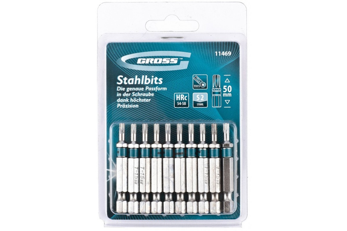 11469 Набор бит Torx 15*50, сталь S2, 10 шт. Gross