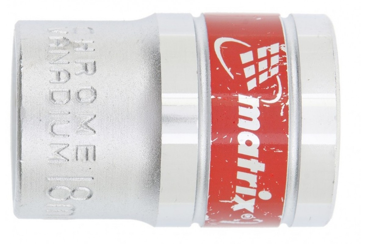 Головка торцевая, 18 мм, шестигранная, CrV, под квадрат 1/2, хромированная Matrix