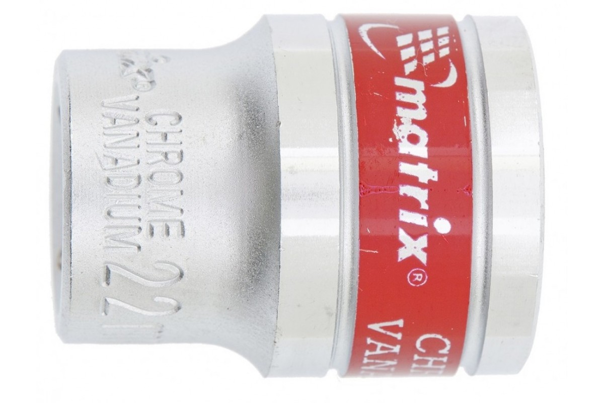 Головка торцевая, 22 мм, шестигранная, CrV, под квадрат 1/2, хромированная Matrix