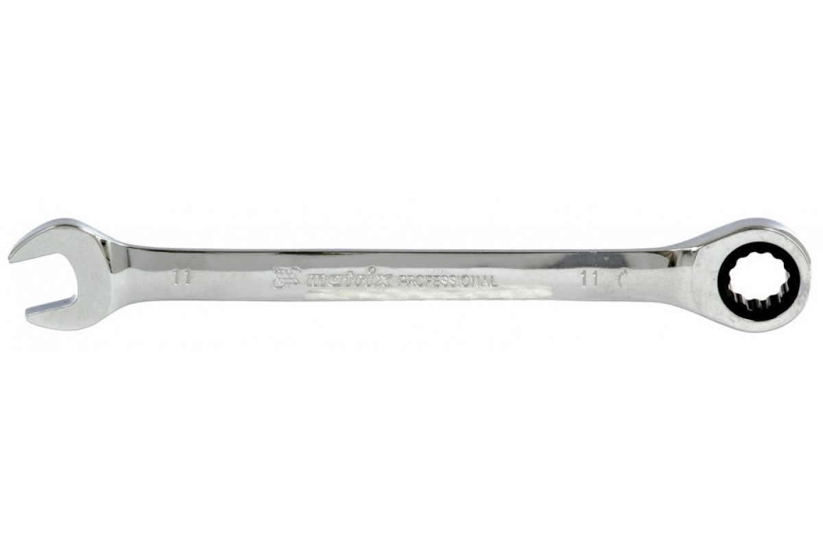Ключ комбинированный трещоточный, 11мм, CrV, зеркальный хром Matrix Professional