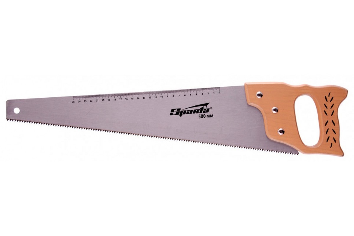 231895 Ножовка по дереву, 500мм, 7-8 TPI, каленый зуб, линейка, деревянная рукоятка Sparta