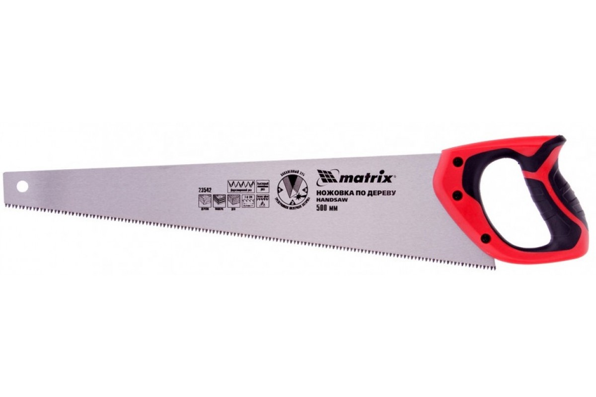 23542 Ножовка по дереву, 500мм, 7-8 TPI, зуб-3D, каленый зуб, двухкомпонентная рукоятка Matrix