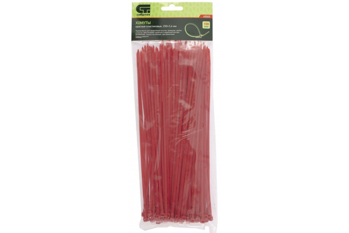 45503 Хомуты, 250*3,6мм, пластиковая, красные, 100шт Сибертех