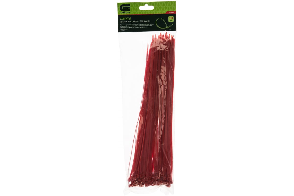 45504 Хомуты, 300*3,6мм, пластиковая, красные, 100шт Сибертех
