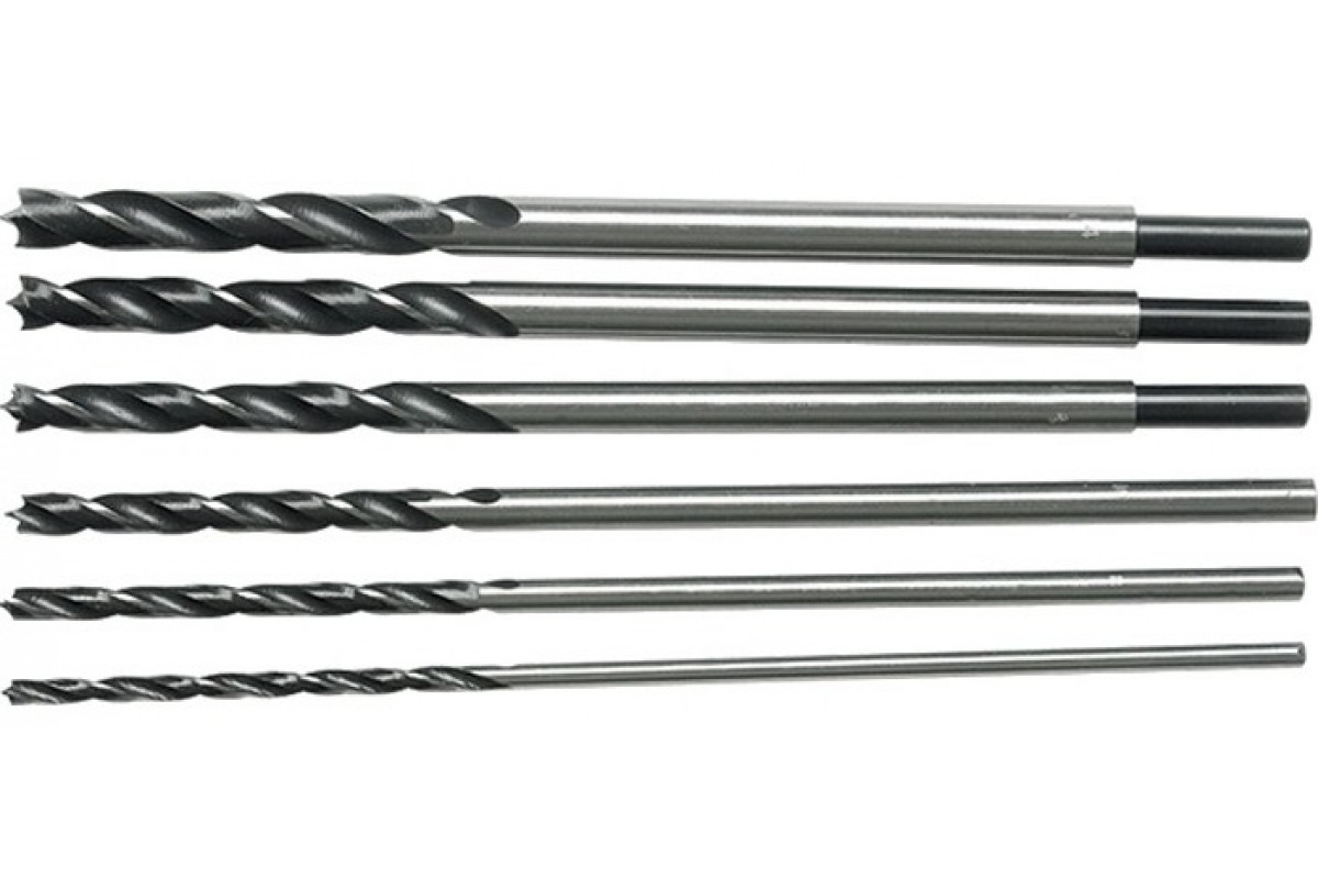 Набор сверл по дереву, 6-8-10-12-13-14мм, L 300мм, 6 шт, цилиндрический хвостовик Sparta