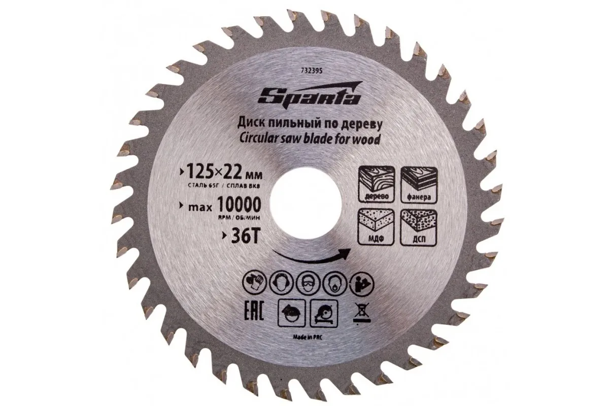 Пильный диск Sparta 732395, ф125 х 22 мм, с 36 зубьями используется для распила древесины мягких и твердых пород, фанеры, плит ДСП и МДФ. 36 зубьев обеспечивают оптимальное по скорости и качеству пиление. Диск устанавливается на торцовочные и циркулярные пилы либо на стационарное распиловочное оборудование, применяется в бытовой сфере. Качественный рез достигается за счет зубцов с попеременной заточкой.