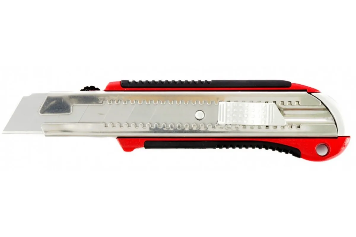 Нож, 25мм, выдвижное лезвие, усиленная металлическая направляющая, металлическая обрезиненная рукоятка Matrix