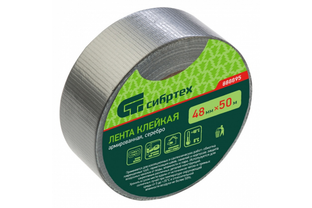888895 Лента клейкая армированная , 48мм*50м, серебро Сибртех