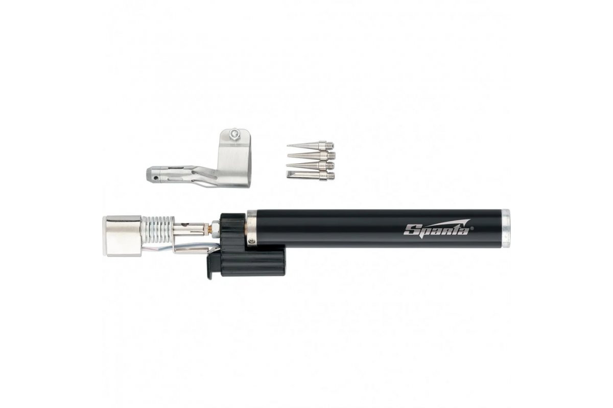 914325 Горелка газовая тип "Карандаш" пьезоподжигом+ 4 насадки для пайки, 200мм SPARTA