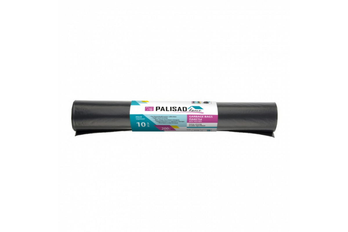 927295 Пакет для мусора 200л, 10 штук черные особо прочные, длинный ролик Palisad