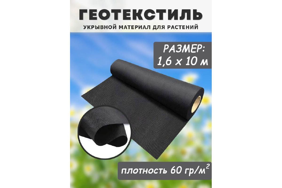 939155 Геотекстиль садовый, спанбонд, СУФ, 1,6х10м, 60г/м2, черный Россия