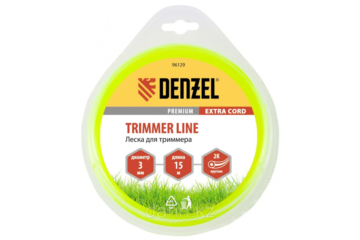 96129 Леска для триммера круглая 3.0мм*15мм Denzel