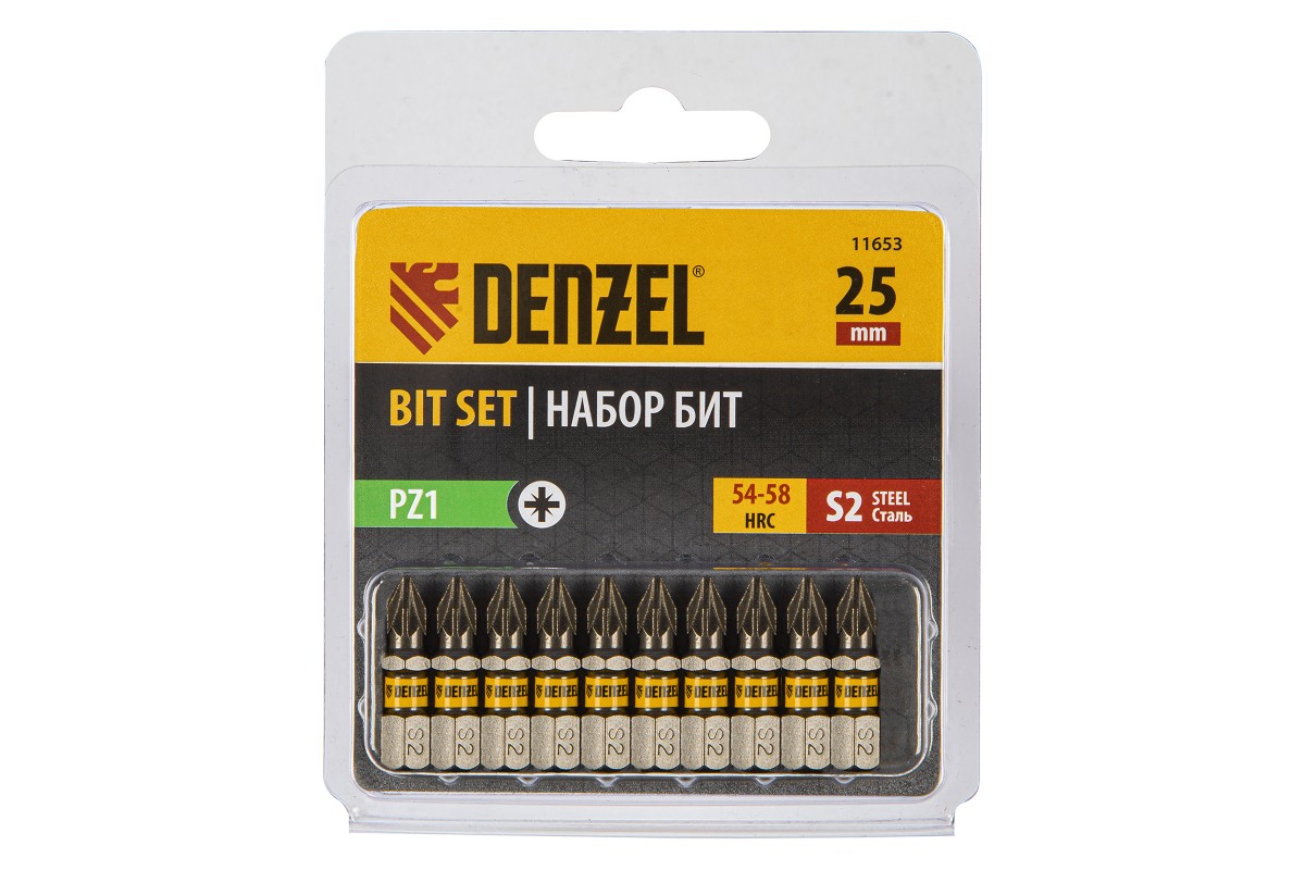 Бита PZ1х25, сталь S2, шестигранный профиль, 10 шт. Е 6,3 Denzel