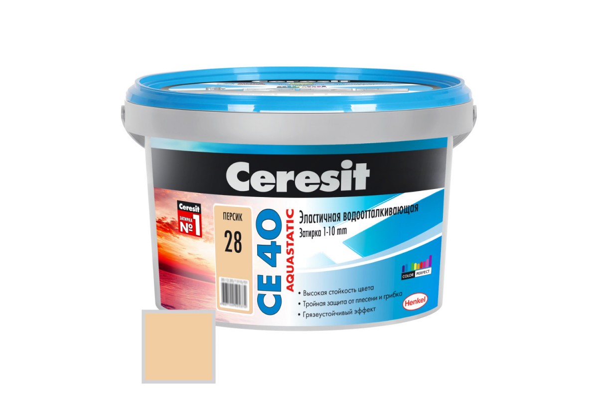 Эластичная фуга для заполнения швов шириной до 8 мм CERESIT CE 40 AQUASTATIC Персик 28 2кг