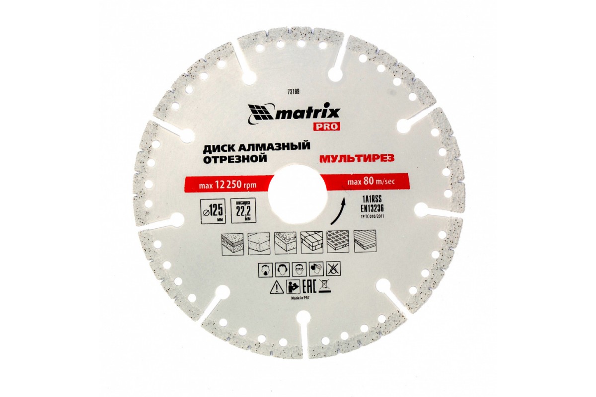 Диск алмазный отрезной "Мультирез" D 125 х 22.2 мм, сухой/мокрый рез, PRO Matrix