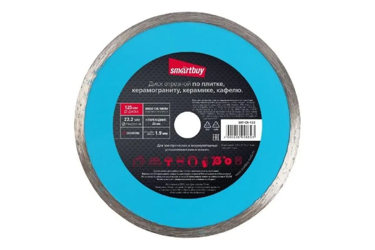 Диск для керамики, стекла, керамогранита, плитки, сухой рез, 125 мм, Smartbuy tools