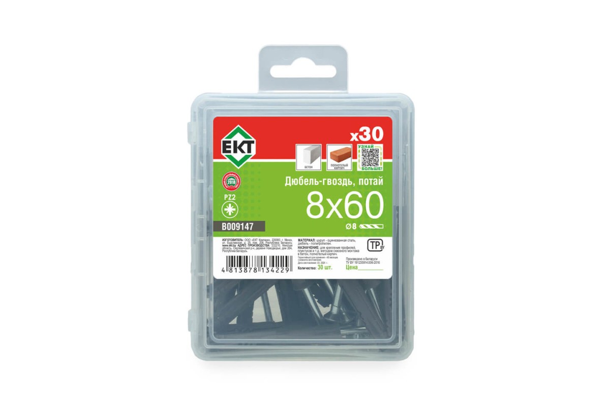 Дюбель быстрого монтажа с гвоздевым шурупом, потай, 8х60, п/п, в пласт. контейнере (упак/30шт)