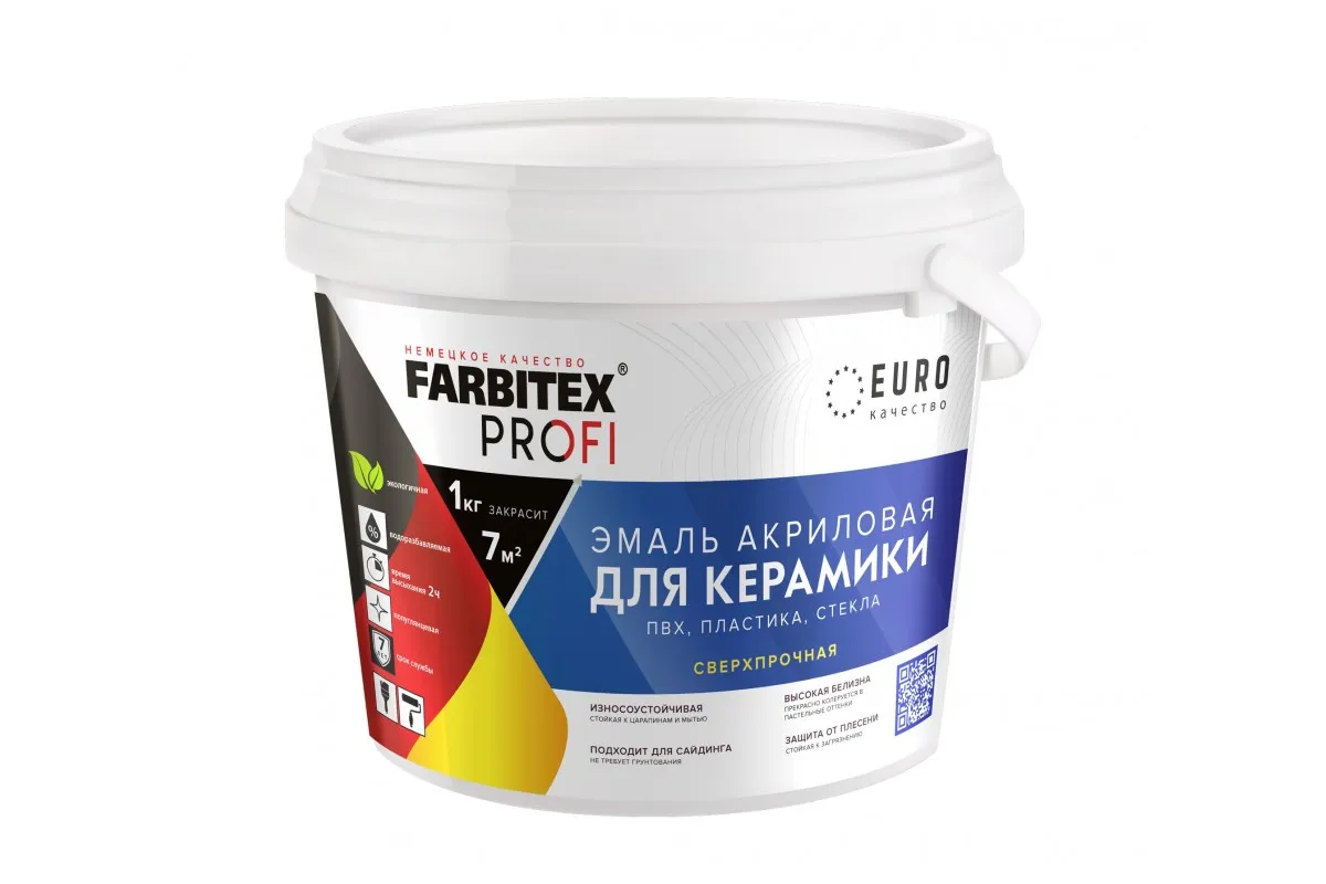 Эмаль акриловая сверхпрочная для плитки керамической, пвх, пластика, стекла FARBITEX PROF 0,9кг