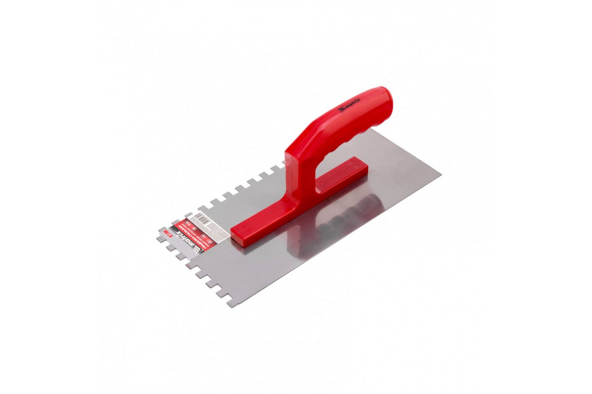 Гладилка стальная, 280 x 130 мм, зеркальная полировка, пластмастмассовая ручка, зуб 10 x 10 мм Matrix