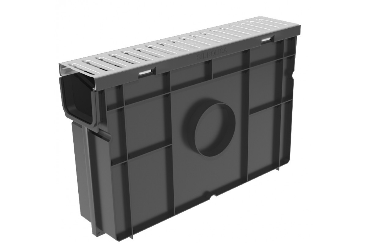 GIDROLICA LIGHT Комплект: пескоуловитель для пластиковых лотков ПУ 10.11,5.32 - пластиковый с решеткой РВ -10.10,8.100 стальной оцинкованной, кл. A15, артикул 08068/0068
