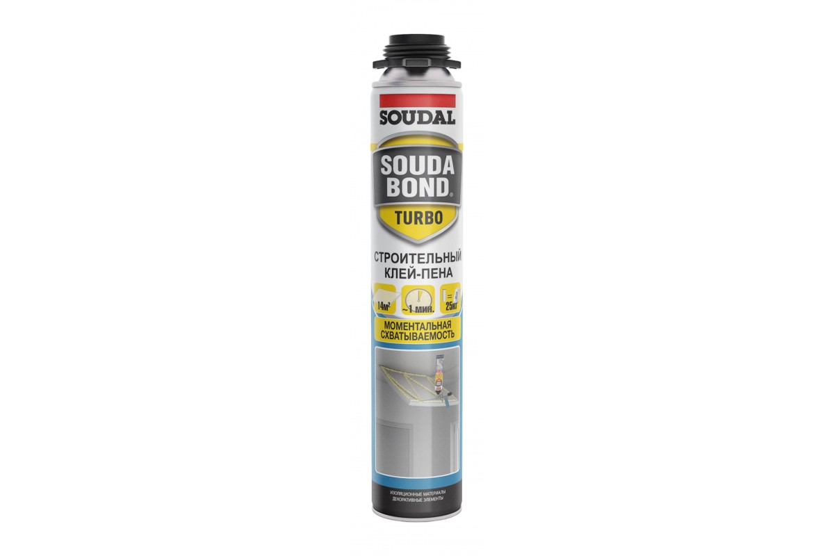 SOUDABOND TURBO — это готовый к применению однокомпонентный полиуретановый клей в аэрозольном баллоне с ускоренным временем первоначального схватывания и превосходной адгезией к большинству строительных материалов. Пистолет гарантирует максимально точное дозирование и высокую производительность продукта.