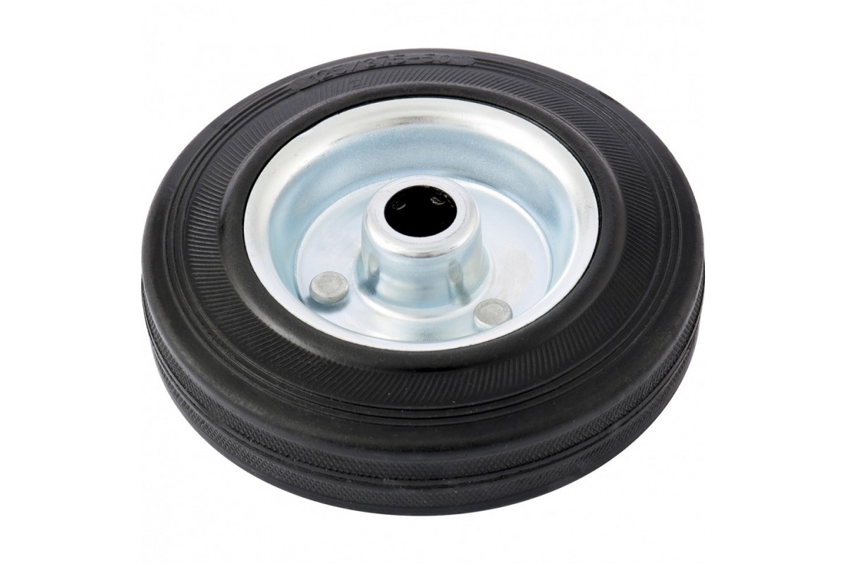 - Контактная поверхность выполнена из термопластичной серой резины, поэтому колесо может применяться на различных покрытиях, долгое время сохраняя рабочие качества.
