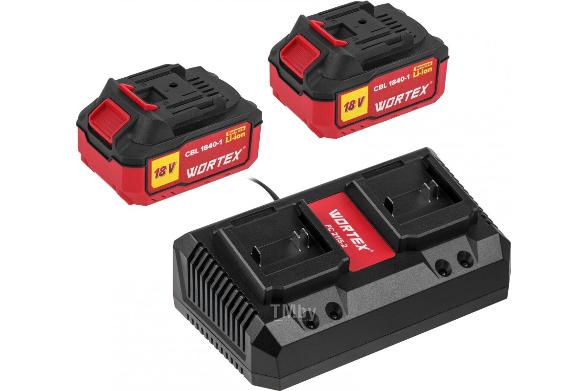 Комплект аккумулятор 18В 4Ач 2 штуки и зарядное устройство WORTEX XLT SET