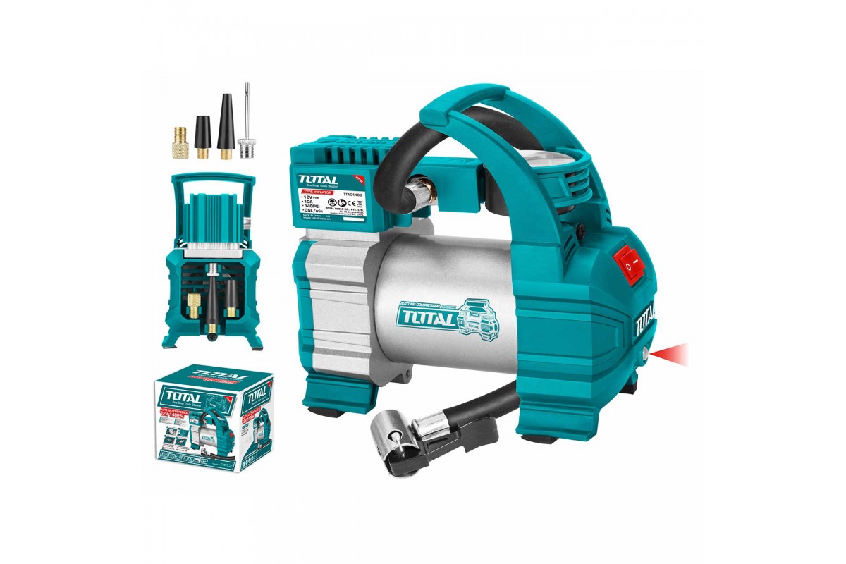 - Автомобильный компрессор TOTAL TTAC1406 - это силовой агрегат, предназначенный для накачки автомобильных и мотоциклетных шин, а также надувных мячей, лодок и пр.