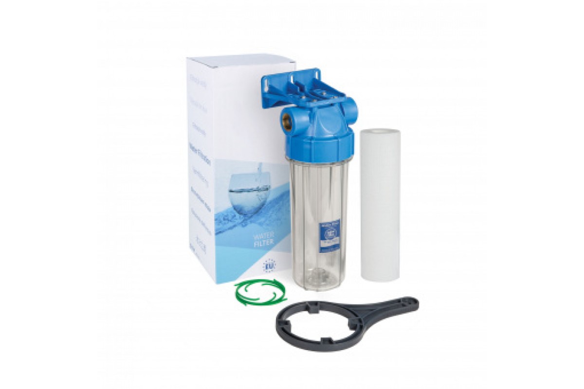 Комплект: 10-ти дюймовый линейный корпус с клапаном сброса давления и прозрачной колбой, кронштейн с саморезами, монтажный ключ, картридж, бактериостатический диск-стабилизатор, инструкция и цветная упаковка. Размеры доступных латунных резьбовых вставок: 1/2 дюйма, 3/4 дюйма или 1 дюйм BSP. Сочетание конструкции корпуса и наличия двух уплотнительных колец (внутри крышки и на колбе) гарантирует максимальную герметичность при работе.