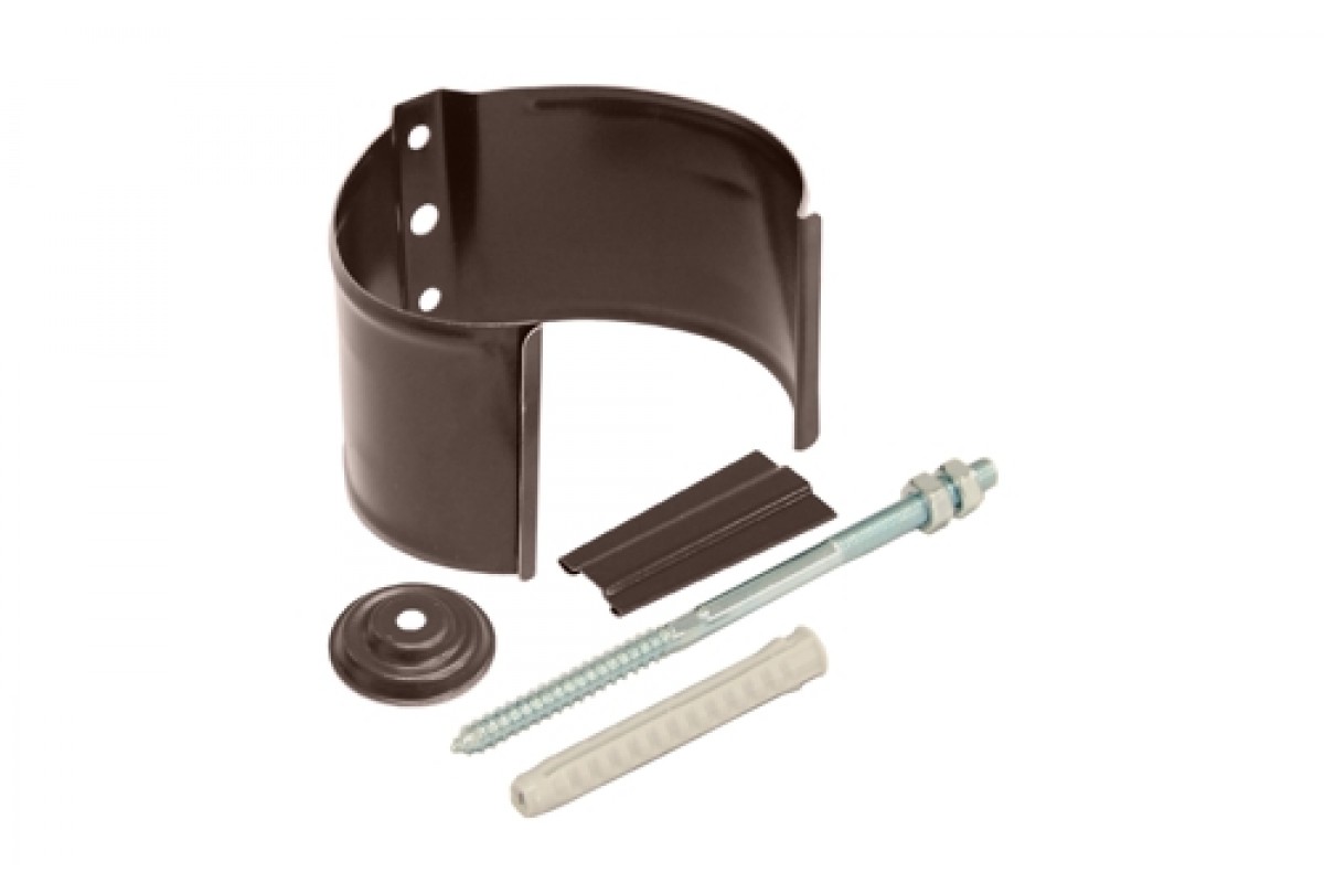 Предназначен для фиксации трубы на кирпичную, бетонную или каменную стену. Поставляется в комплекте с метизом длиной 160 мм под ключ/ биту Torx T25, дюбелем и декоративной накладкой. При монтаже защелку кронштейна трубы необходимо располагать широкой стороной вниз. Таким образом воздействие климатических факторов (температурное расширение металла) будет нивелировано.
