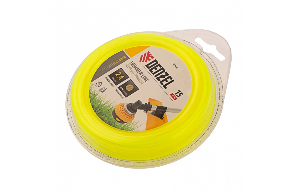 Круглая леска для триммера Denzel FLEX CORD 96108 диаметром 2,4 мм и длиной 15 м поставляется в блистере и предназначена для скашивания густой травы и сорняков с толстыми стеблями. Совместима с бензотриммерами и электротриммерами мощностью 1-1,4 кВт.