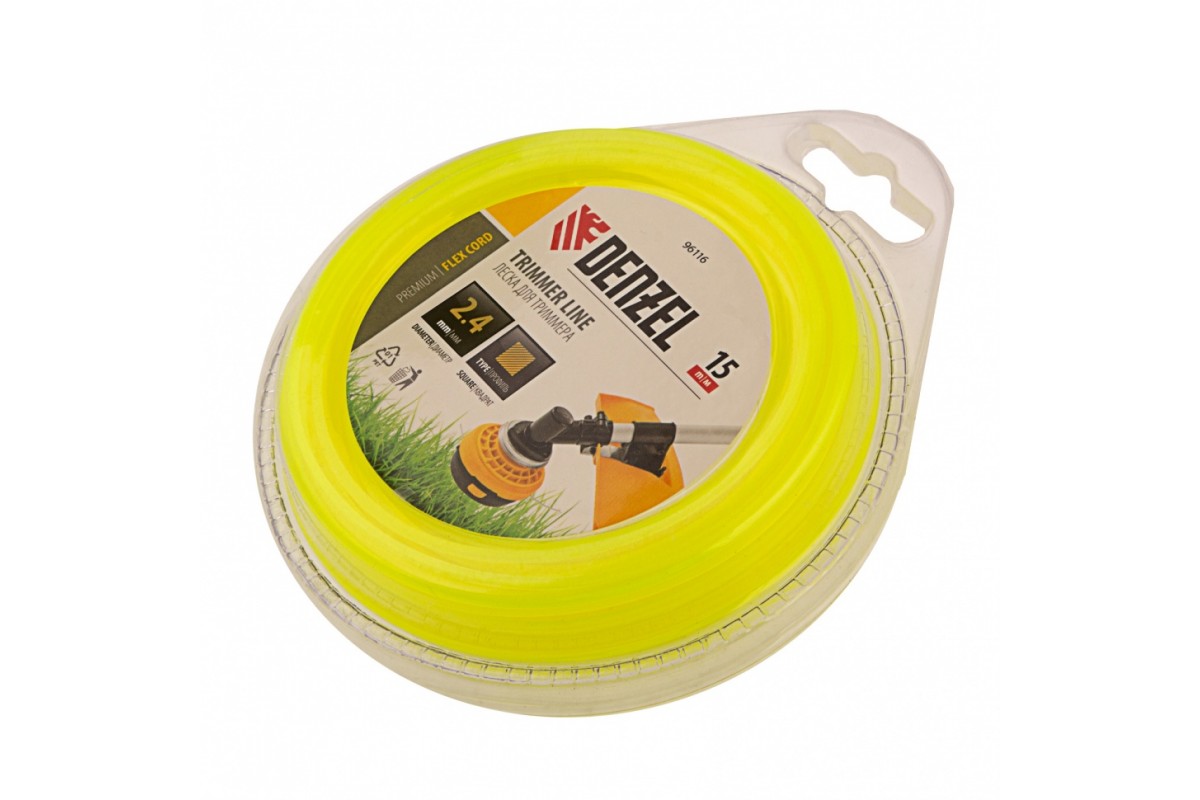 Леска для триммера, квадрат 2.4 мм х 15 м, блистер Flex cord Denzel