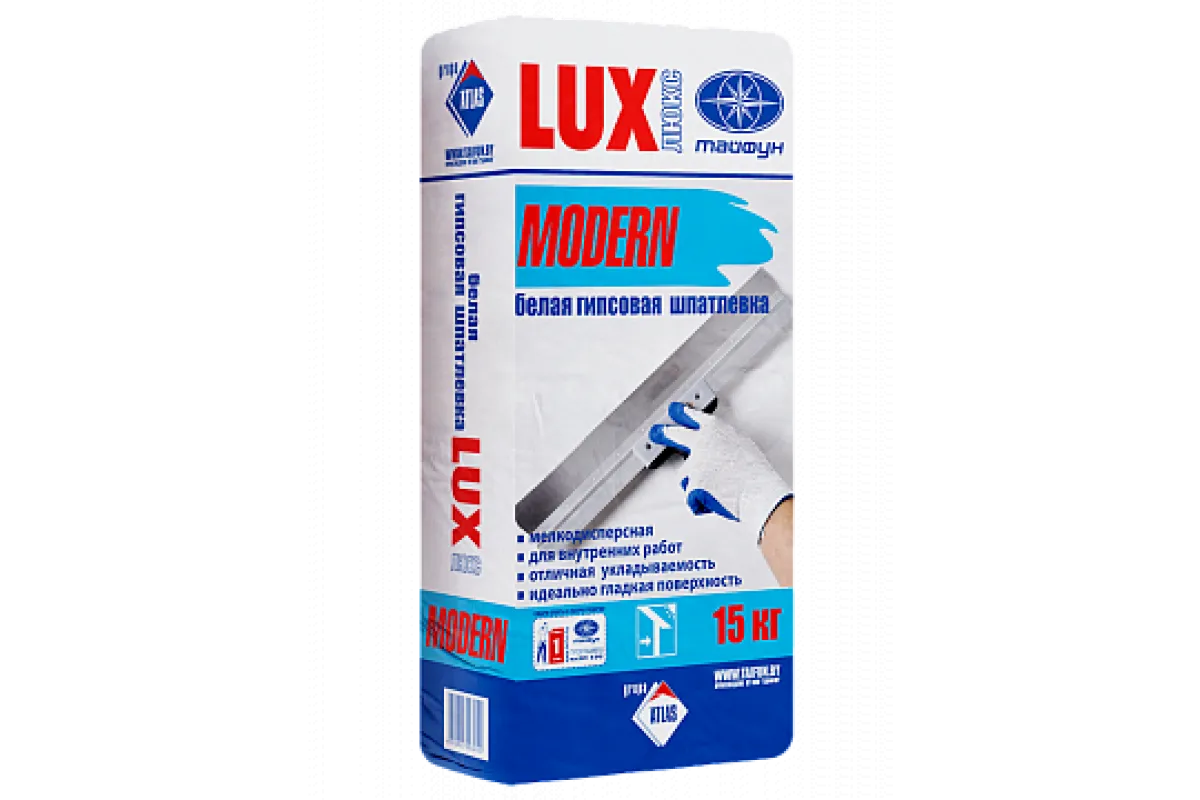 Оптимально подобранный состав гипсовой шпатлевки «Люкс» MODERN на основе гипса, полимерного связующего, наполнителя и специальных добавок позволяет: