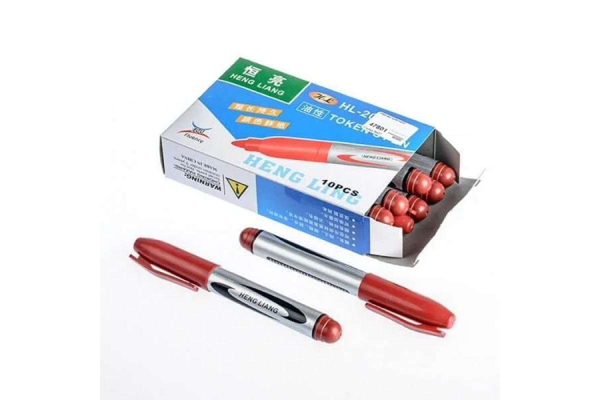 Маркер перманентный круглый красный служит для нанесения разметки или маркировки. Широкое применение получили из-за способности маркировать изделия из любых материалов: стекло, металл, дерево, керамика, пластик, резина, бетон. Отличаются хорошей видимостью, износостойкостью и водостойкостью используемой краски.