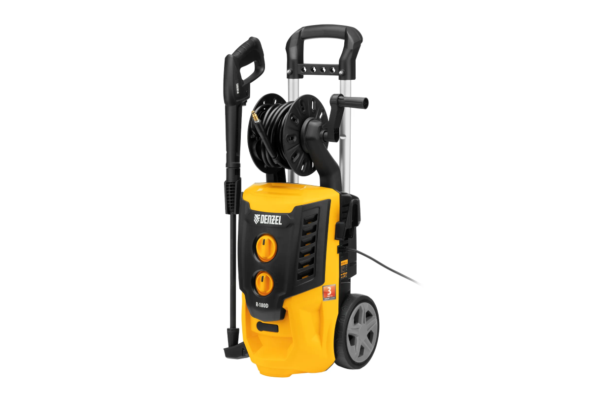 Моечная машина высокого давления Denzel R-180D 58239 с барабаном, мощностью 2200 Вт и производительностью 380 л/ч подает струю воды под давлением 180 бар и используется для очищения поверхностей. Позволяет быстро привести в порядок садовые дорожки, удалить пыль и грязь с фасада здания, автомобиля, велосипеда или мотоцикла, отмыть садовый инвентарь. Моечная машина подключается к водопроводу, а при его отсутствии может забирать воду из любого резервуара, работая в режиме самовсасывания. Устройство пригодится для поддержания порядка на загородном участке.