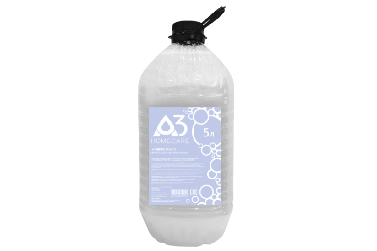 Жидкое мыло для рук "Французская лаванда" A3 HOMECARE, 5 литров предназначено для бережного ухода за руками. Подойдет для всех типов кожи, не вызывает раздражения, сухости и чувства стянутости. Гипоаллергенное, можно использовать детям. Подходит для ежедневного ухода. Легкий ненавязчивый аромат лаванды. Гелеобразное, перламутрового цвета, не водянистое (экономичный расход), умеренно пенится. В составе есть крема, поэтому не сушит кожу и подпитывает ее, можно использовать в холодной воде. В составе есть натуральные компоненты, увлажняющие и освежающие кожу: глицерин, лимонная кислота, экстракты жасмина или лаванды. Нейтральный pH, поэтому можно использовать для тела. Изготовлено по авторской рецептуре согласно ГОСТу.