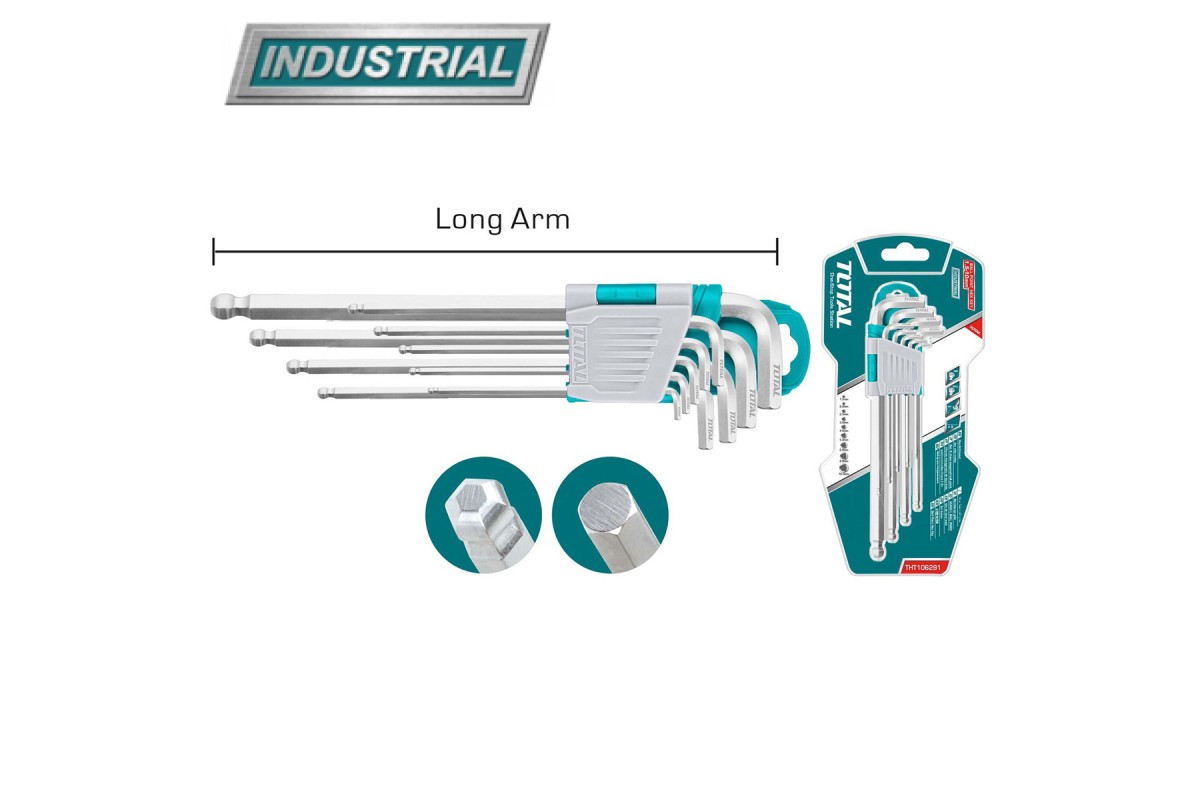 Набор ключей шестигранных со сферической головкой 1,5-10 мм длинных TOTAL THT106291 (9 шт)