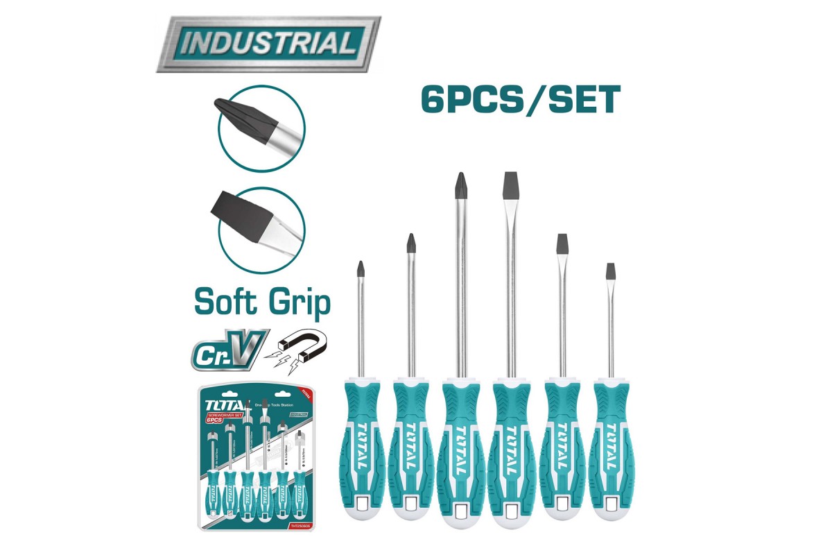 Характеристики: Кол-во предметов в наборе 6шт., Тип отверток SL5.5x75, 5.5x100, 6x150, PH1x75, PH1x100, PH2x150. Материал хромованадиевая сталь (Cr-V)