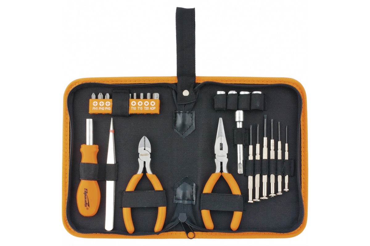 Набор Sparta 13534 включает 25 предметов, необходимых при проведении слесарно-монтажных работ. Он рассчитан на бытовое использование, поэтому будет полезен в хозяйстве. С помощью часовых отверток можно провести точные работы, биты и торцевые головки позволяют осуществить монтаж/демонтаж резьбовых соединений, вспомогательный инструмент пригодится для захвата и удержания деталей, удлинитель используется для работы в труднодоступных местах.