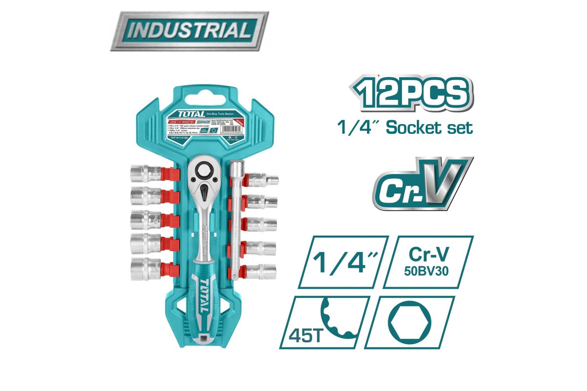 Набор торцевых головок с трещоткой 1/4 " TOTAL THT14114126 (12 предметов)