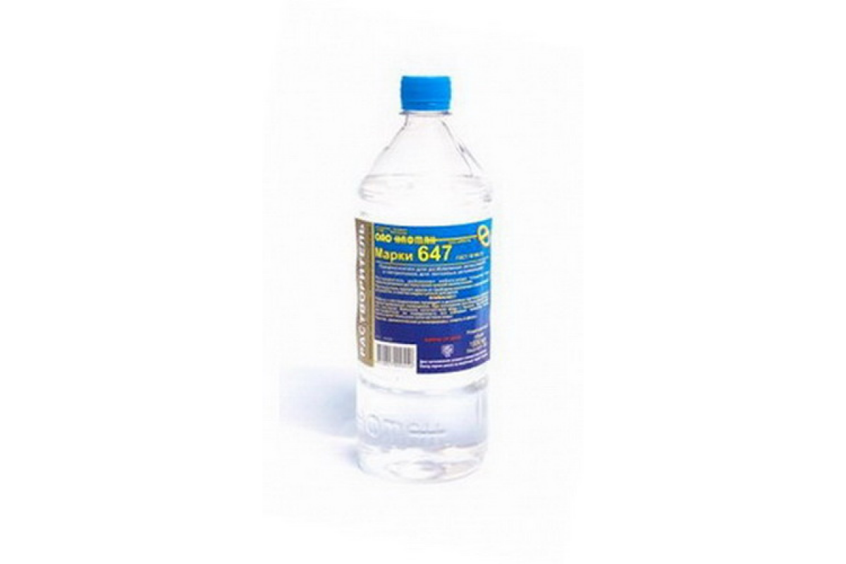 Растворитель 647 0,9 л Нафтан. Применяется для разбавления нитроэмалей, нитролаков, нитрошпатлевок, также является универсальным растворителем. Представляет собой бесцветную или слегка желтоватую однородную прозрачную жидкость без мути.