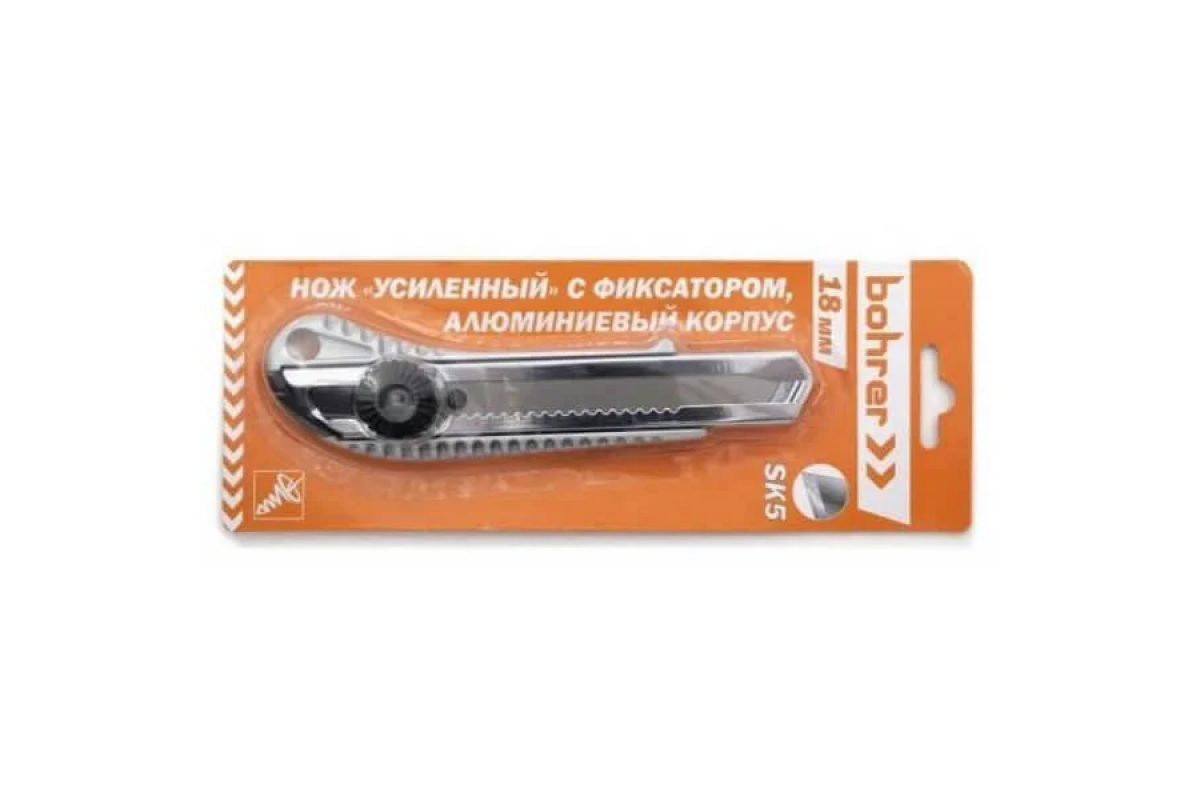 Нож Bohrer с выдвидными лезвиями 18мм усиленый, алюминиевый корпус, регулируемый фиксатор лезвия (сталь SK5)