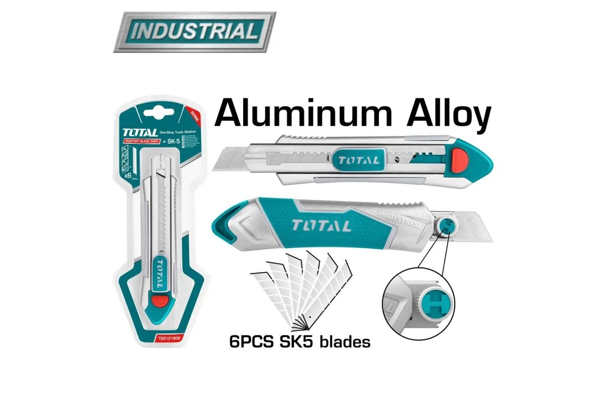 Характеристики: Сегментированное, стальное лезвие, алюминиевая рукоятка с прорезиненным покрытием. Размер лезвия 18x100мм., Общая длина 178мм.