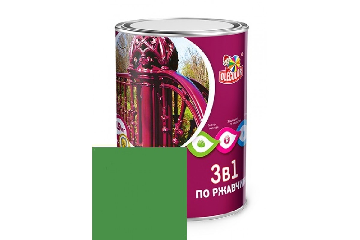 OLECOLOR Грунт-эмаль по ржавчине 3 в 1 Зеленый 0,9кг