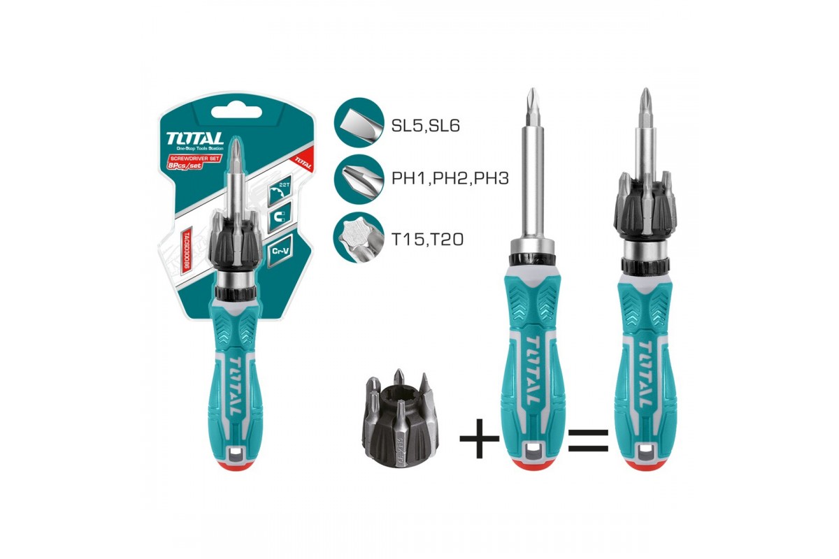 Отвертка реверсивная с набором бит TOTAL TACSD30086 (8 предметов)