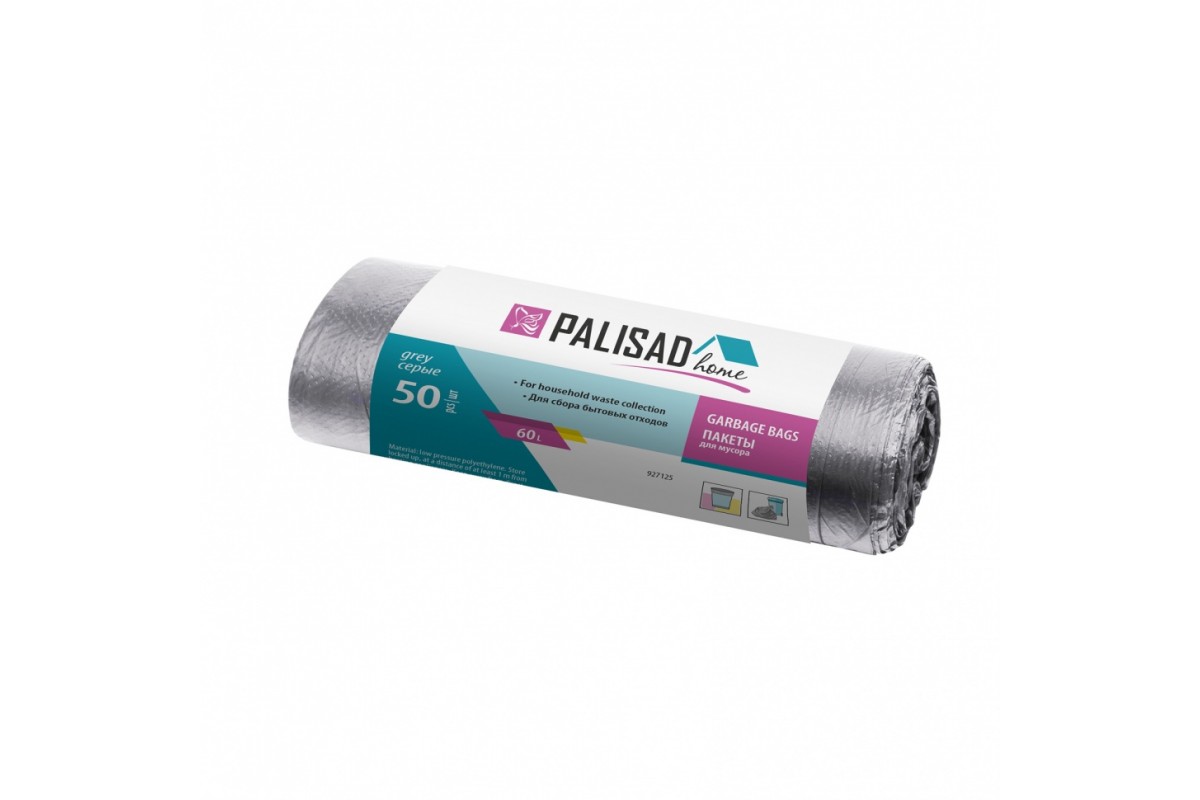 Пакеты для мусора 60 л x 50 шт. серые, Home Palisad (927125)