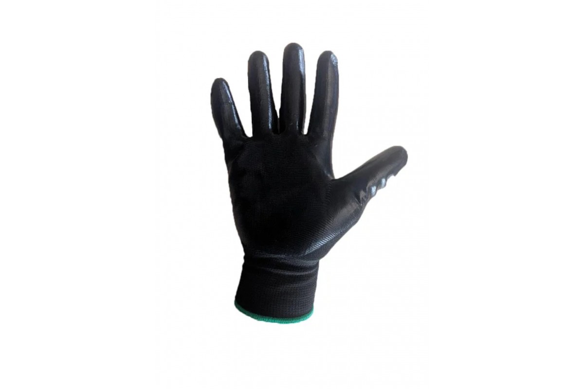 Перчатки черные из полиэстера с черным нитриловым покрытием р.9