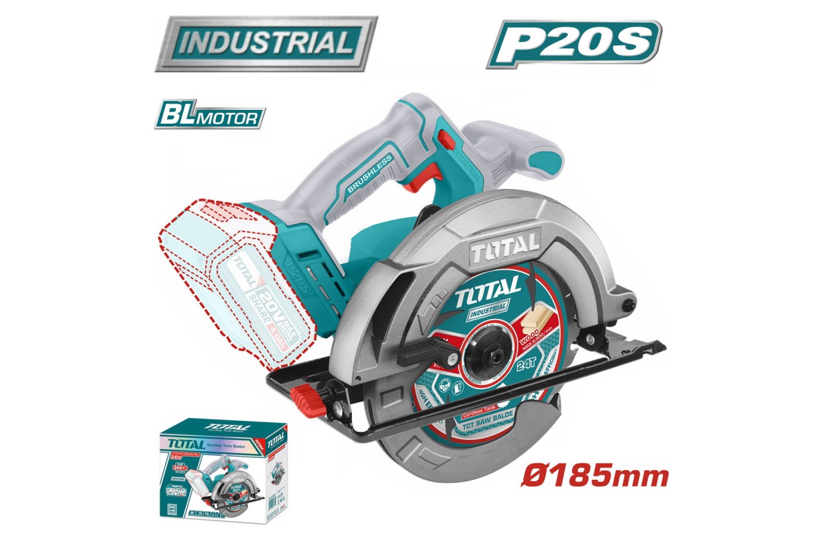 - TOTAL TSLI1851 – аккумуляторная циркулярная пила для интенсивного (industrial) использования.