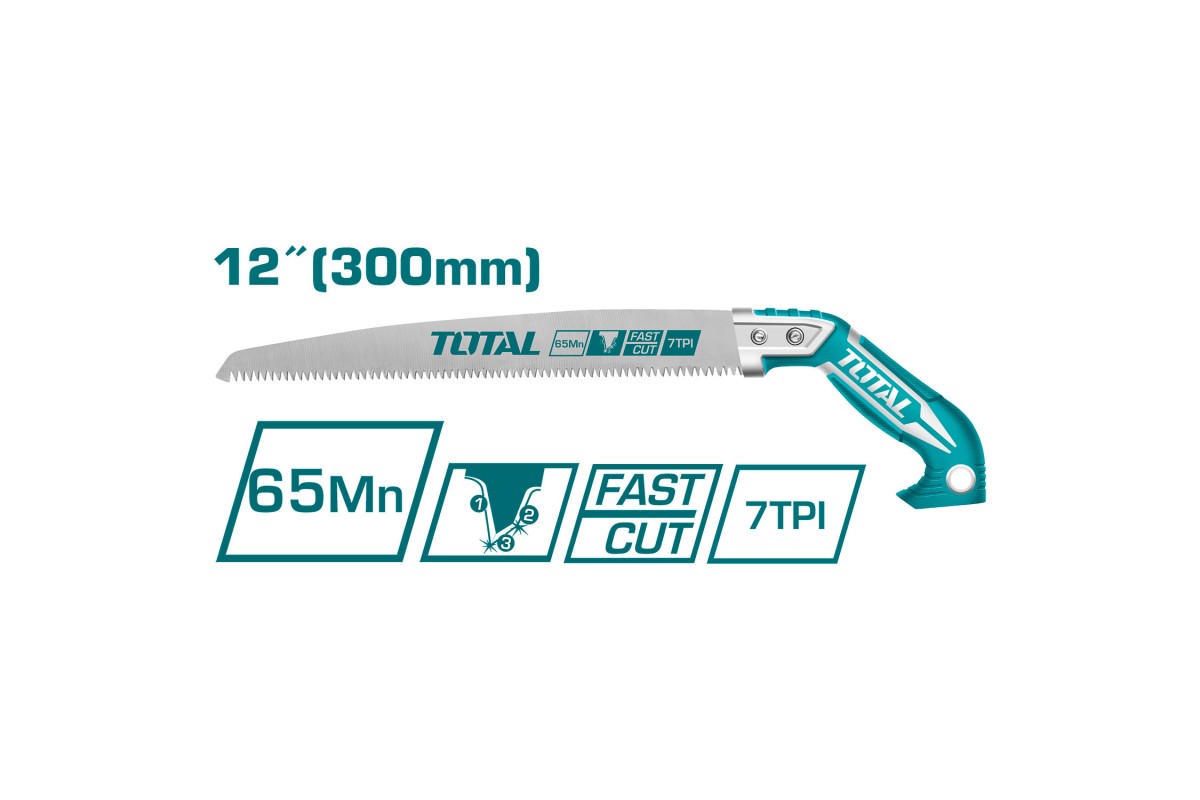 Характеристики: Длина 300мм., Кол-во зубъев на дюйм 7, Материал лезвия SK5 углеродистая сталь, Складная.